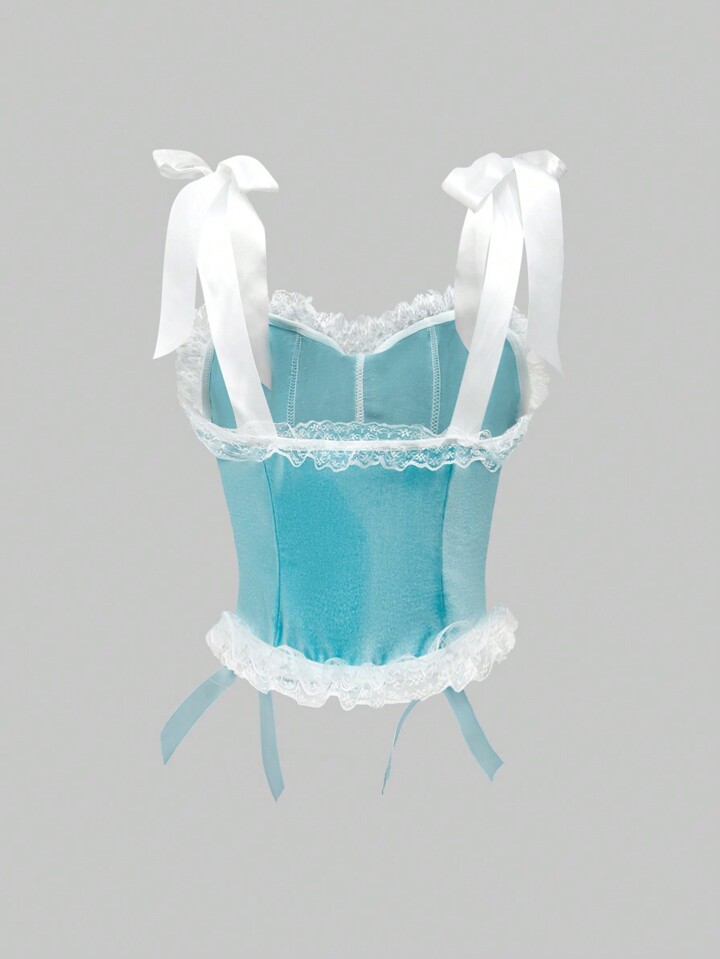 Goth Vintage Palast-Stil blaues Kreuz Anhänger, Spitzen-Schleife, SamtLässig Trägershirt für Damen
