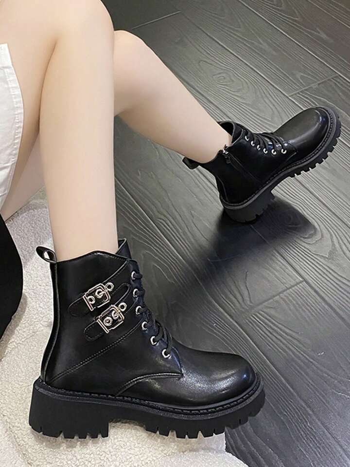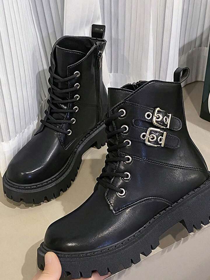 Goth Frauen Schnalle Dekor, Band vorne, Kampfstiefel , Cool Outdoor Stiefel