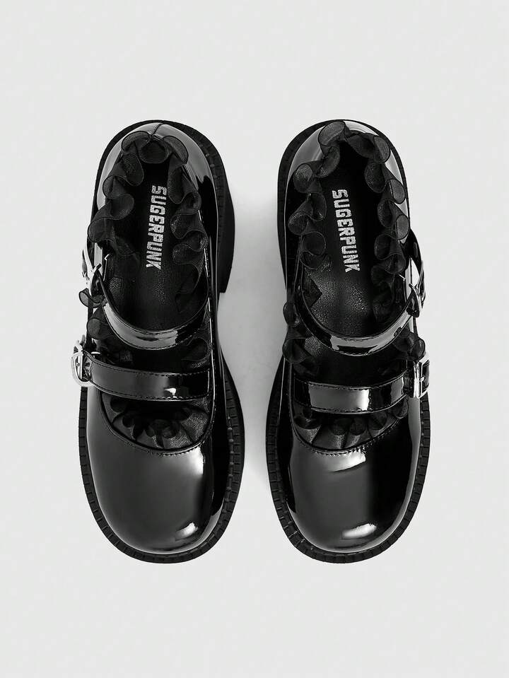 Goth Damen unifarbene Mesh Kontrast Lässig Plateau und Keilabsatz Slip-On Schuhe