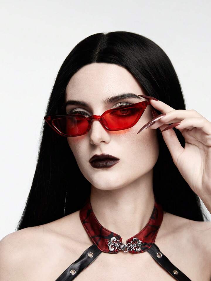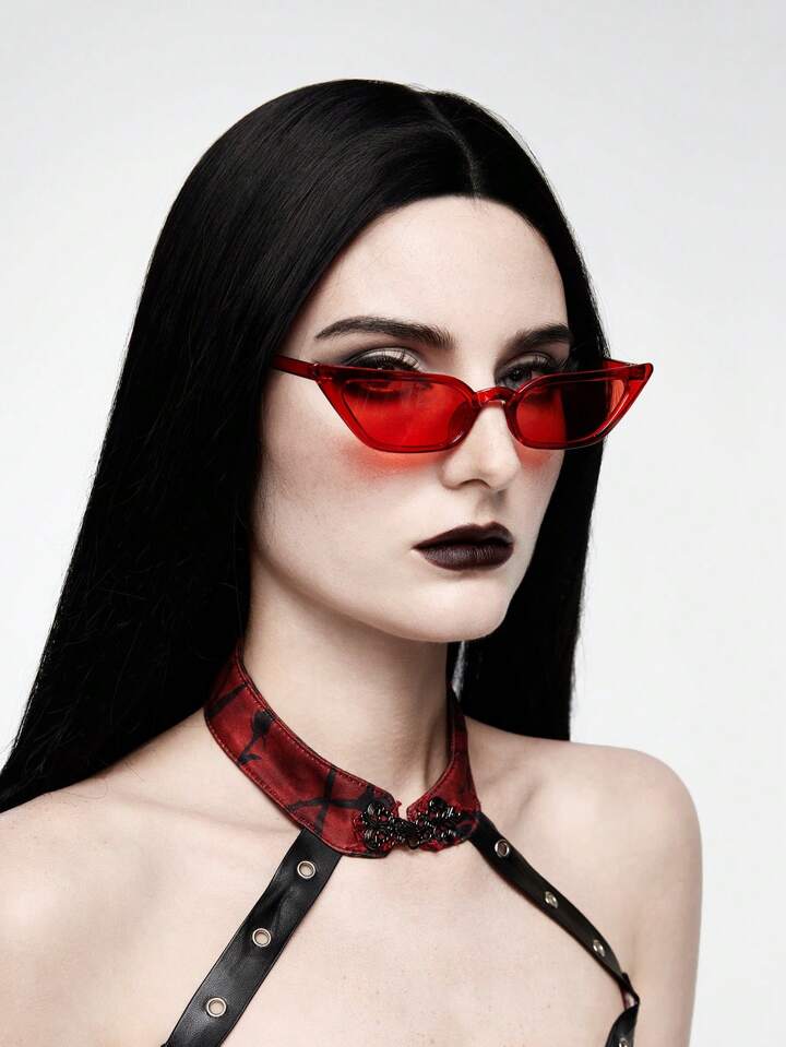 Goth Damen Rote Cat Eye Mode Dekorative Brille