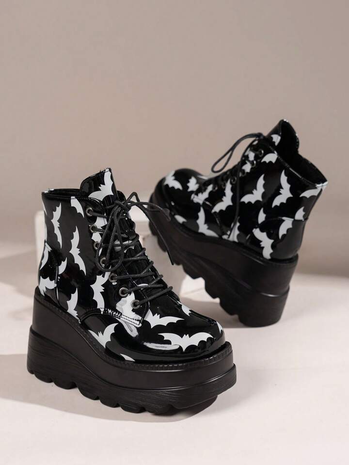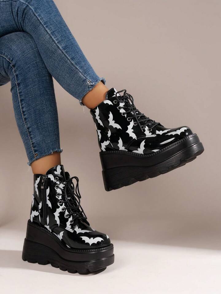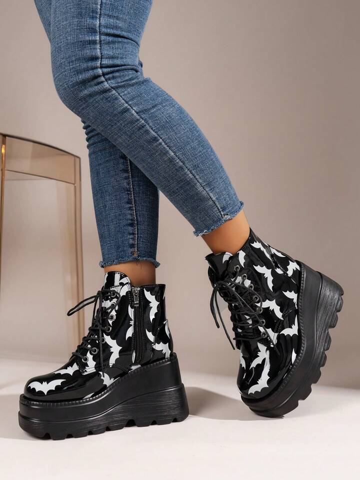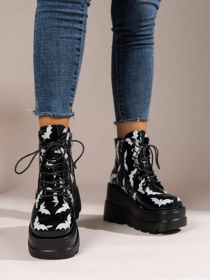 Goth Frauen Kampfstiefel zweifarbig Band vorne,