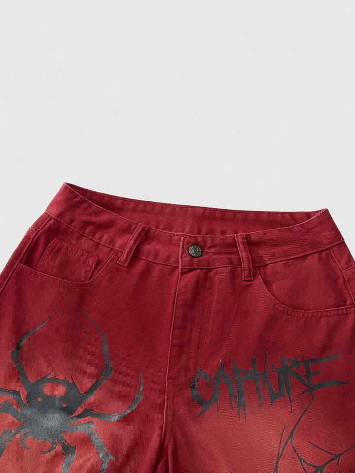 Goth Damen Lässige Destroyed Denim Shorts mit Spinnen-Muster