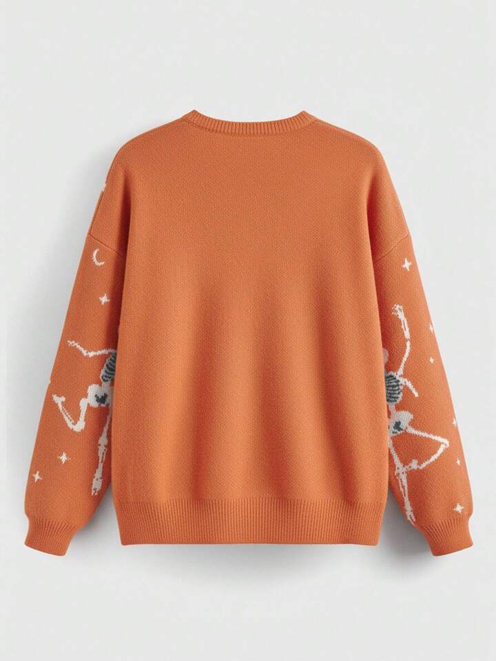 Goth Damen Lässig Pullover mit Totenkopf Muster, Rundhalsausschnitt, Drop-Shoulder, Langarm, Herbst/Winter
