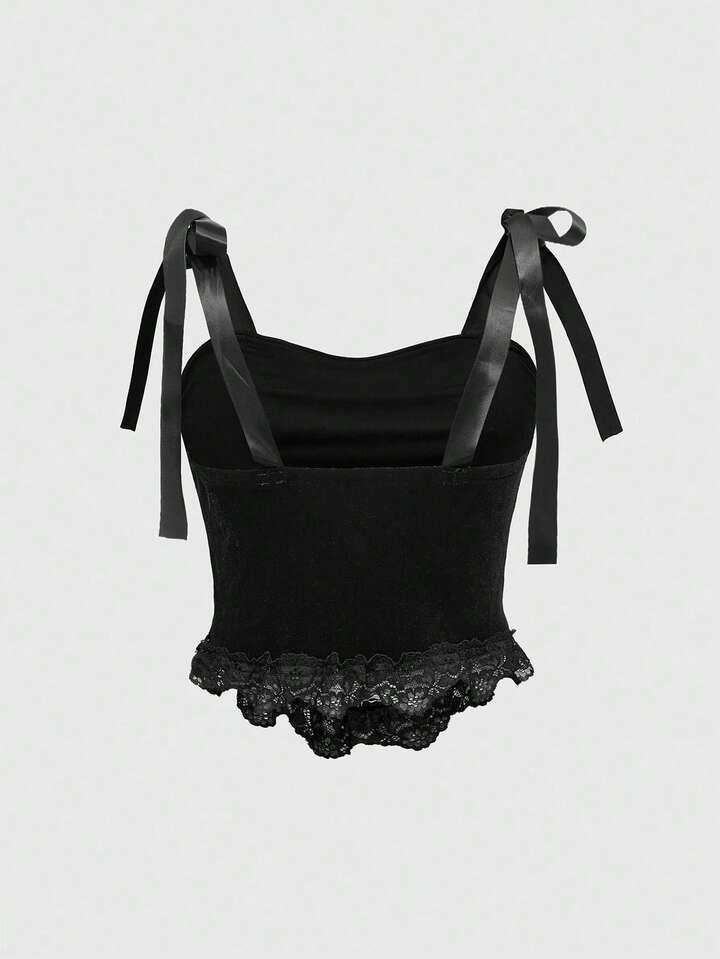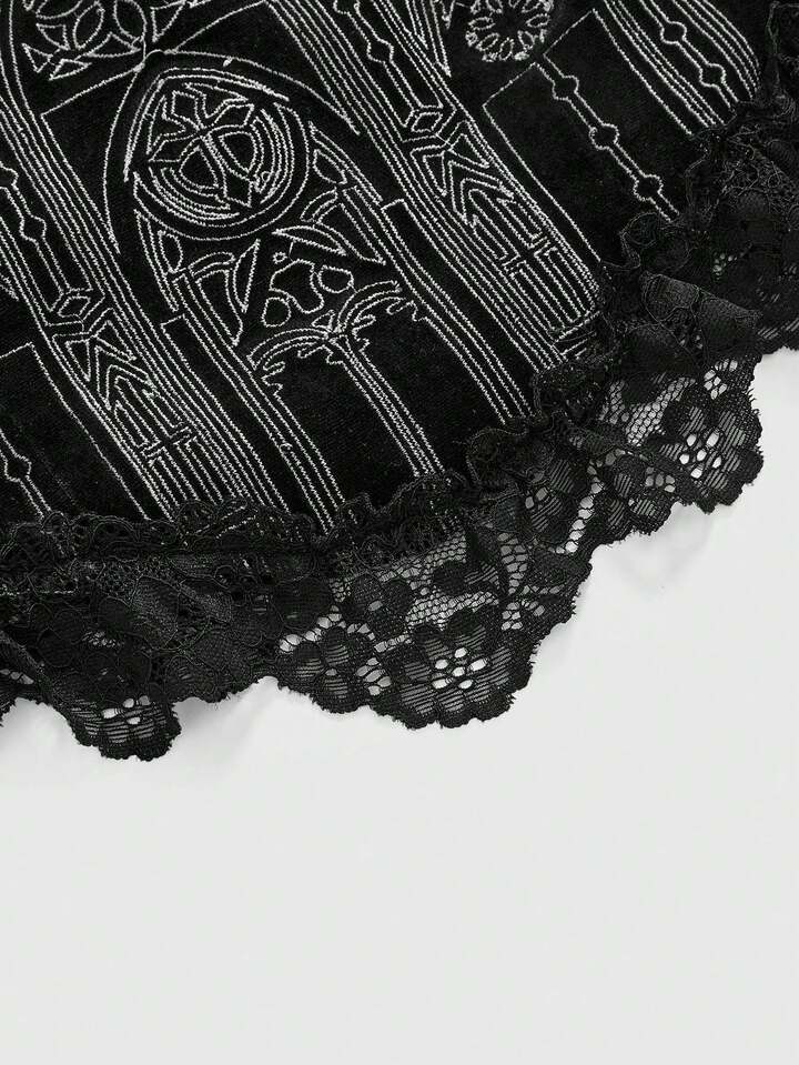 Goth Damen Mode Punk Spitzenbesatz bedrucktes Trägerhemd