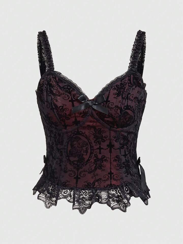 Gothic-stil Kreuz Bedruckte Netz Spitzen-camisole Für Damen