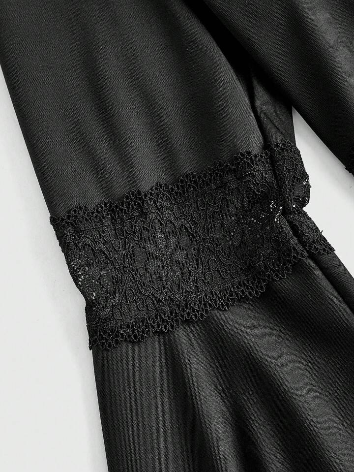 Goth Damen Kleid mit Spitzen-Einsätzen und asymmetrischem Saum