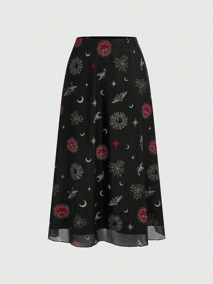 Goth Damen Retro Sonne, Mond & Stern Augen Muster Rock