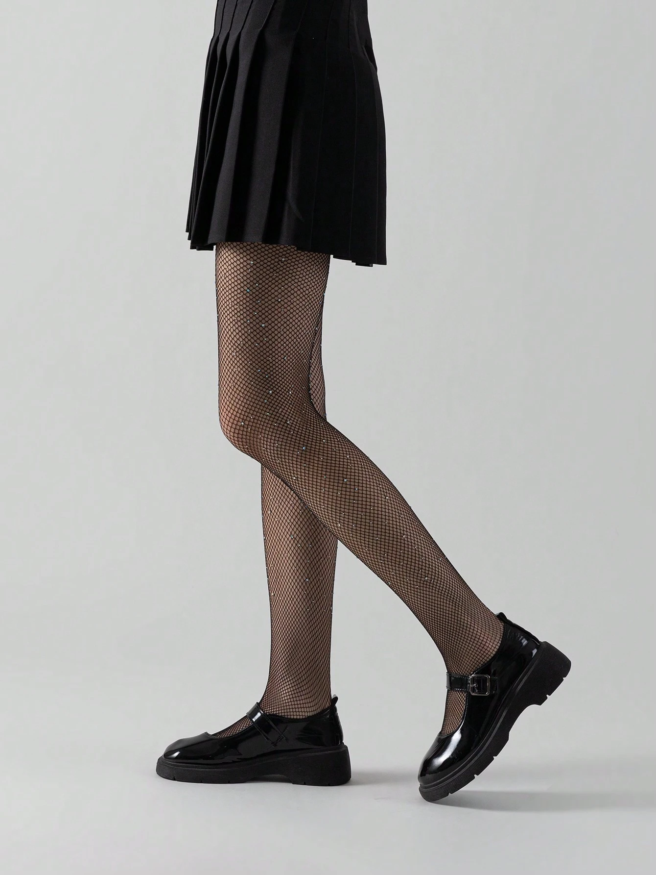 Goth Damen Strumpfhose/Strümpfe/Leggings aus Fischnetz mit Strasssteine Dekoration