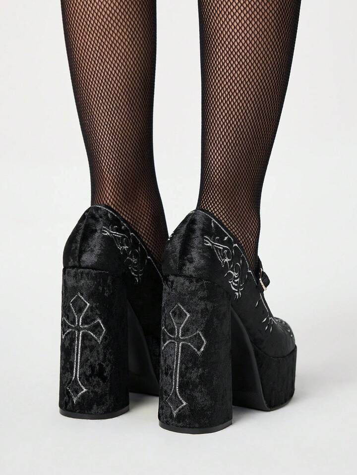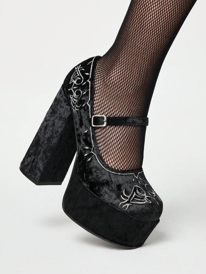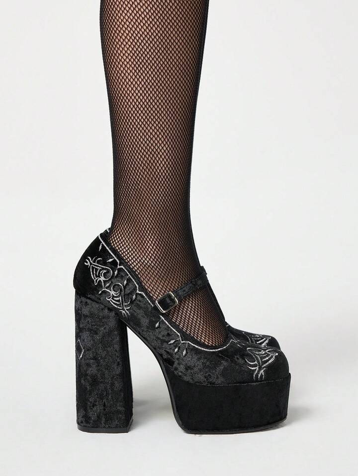 Goth Damen Frühling/Herbst Neue Riemen Stickerei Muster High Heel Plateau Pumps