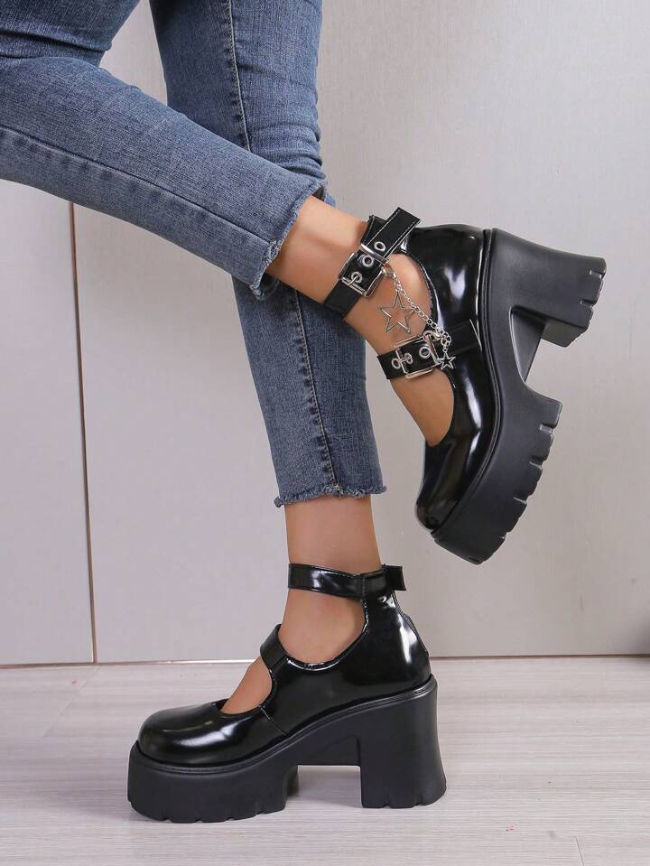 Goth Damenschuhe Mit Keilabsatz Und Plateau-sohle Im Mary-jane-stil