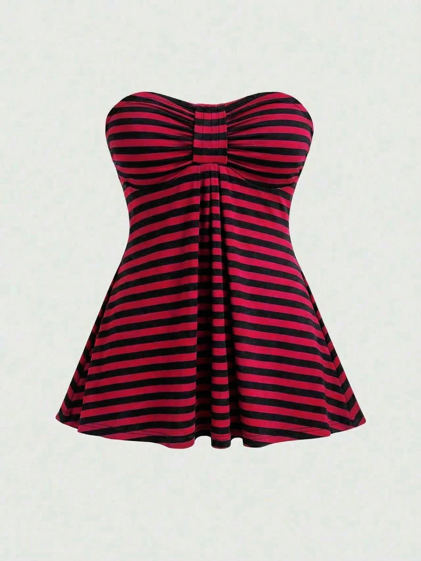 Goth Y2K Retro gestreiftes kurzes Tube Top, geeignet für Musik-Festival-Outfits, Große Größen