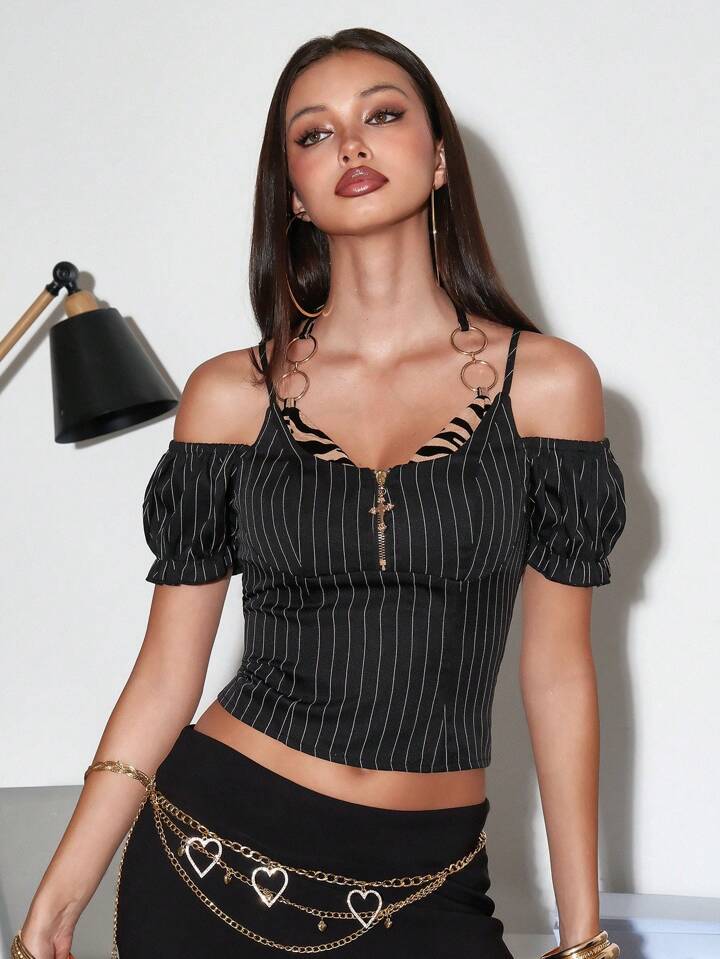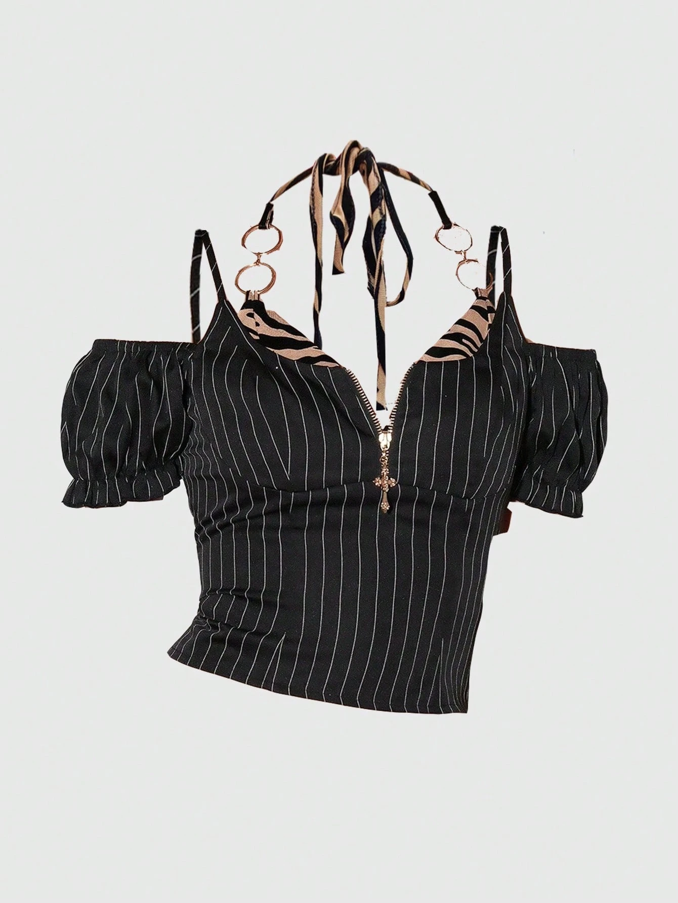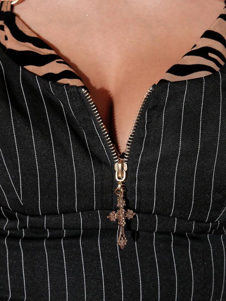 Goth Y2K vertikal gestreiftes Zebra Muster Bralette Tank Top