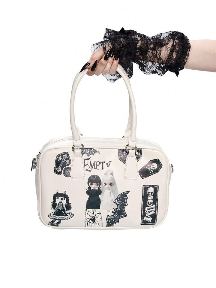 Goth Gotischer dunkler Puppen-Element Weißer Handtaschenanhänger: Visuelle Wirkung von Schädel, Fledermaus und einzigartiger Puppe