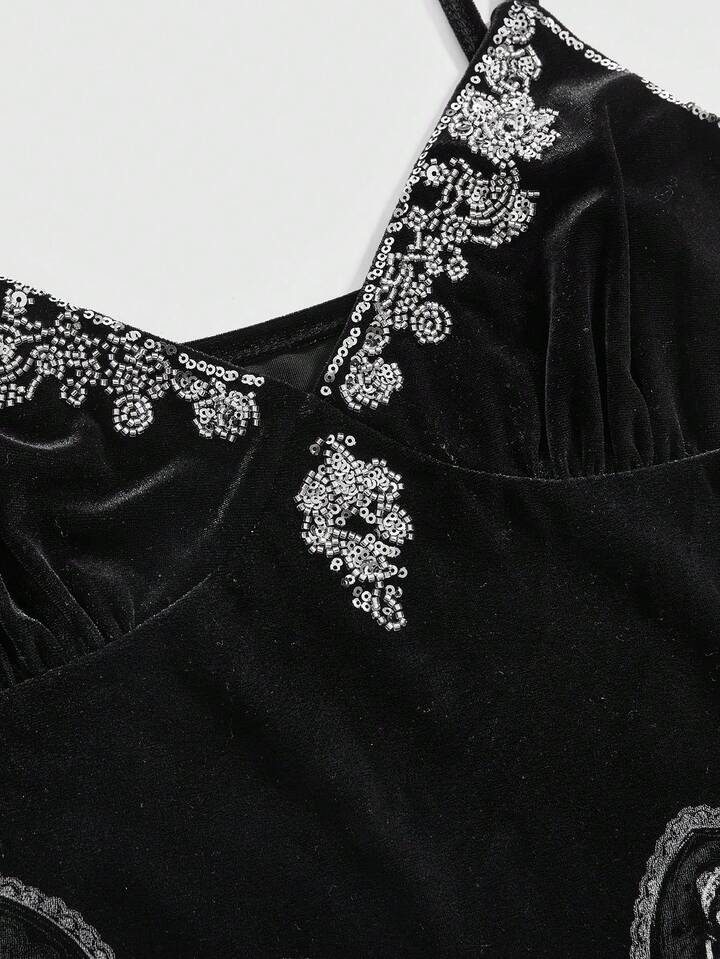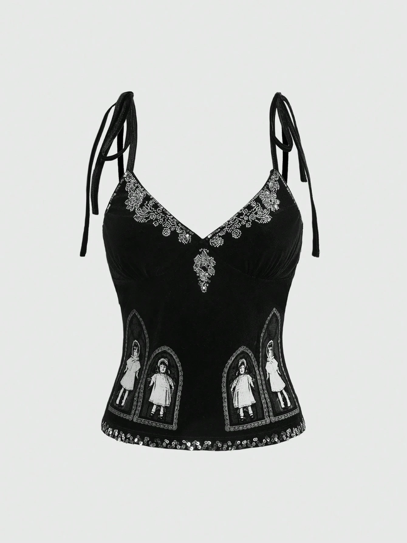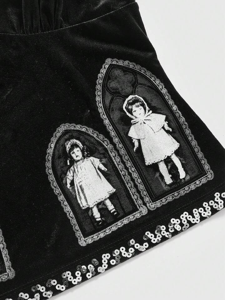 Gothic dunkle Puppen-Muster Pailletten-Kragen Bodycon Trägertop