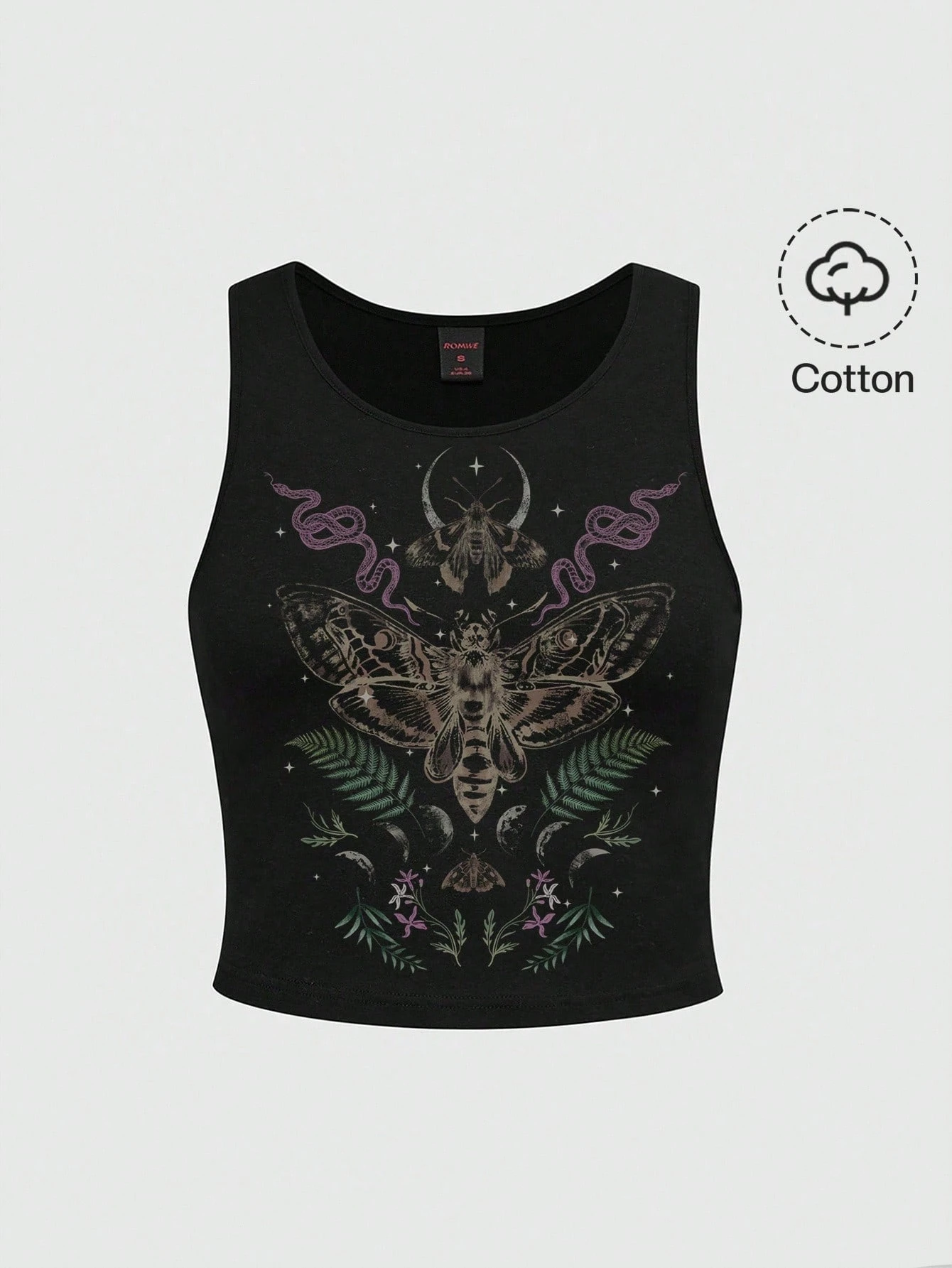 Gothic dunkles Halloween Rundhals Motten Wald Natur Mond Sonne Stern Schlange Pilz ärmelloses Frauen Tank Top