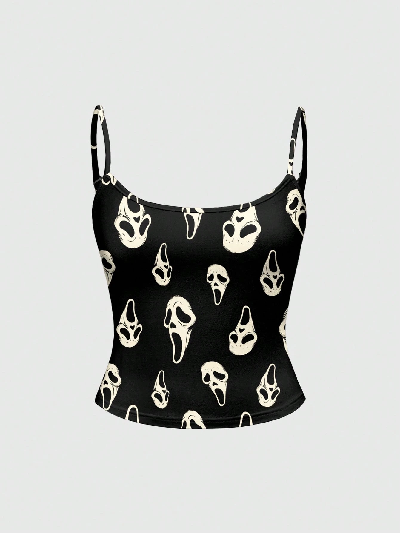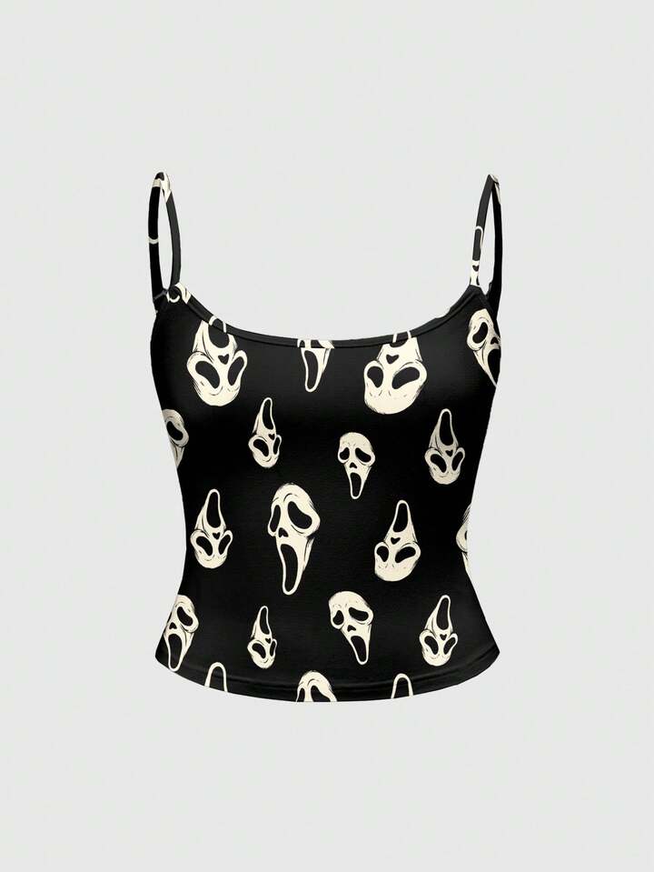 Goth Gotischer, dunkler, mysteriöser Gespenstergesichts-Muster Trägerhemd für Frauen