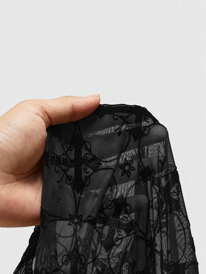 Gothisches, elegantes Kurzarm Top der Frauen mit Kreuz-Flock-Muster und Halb-Transparenz
