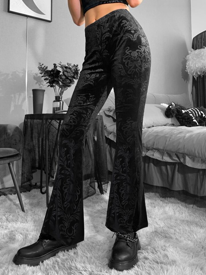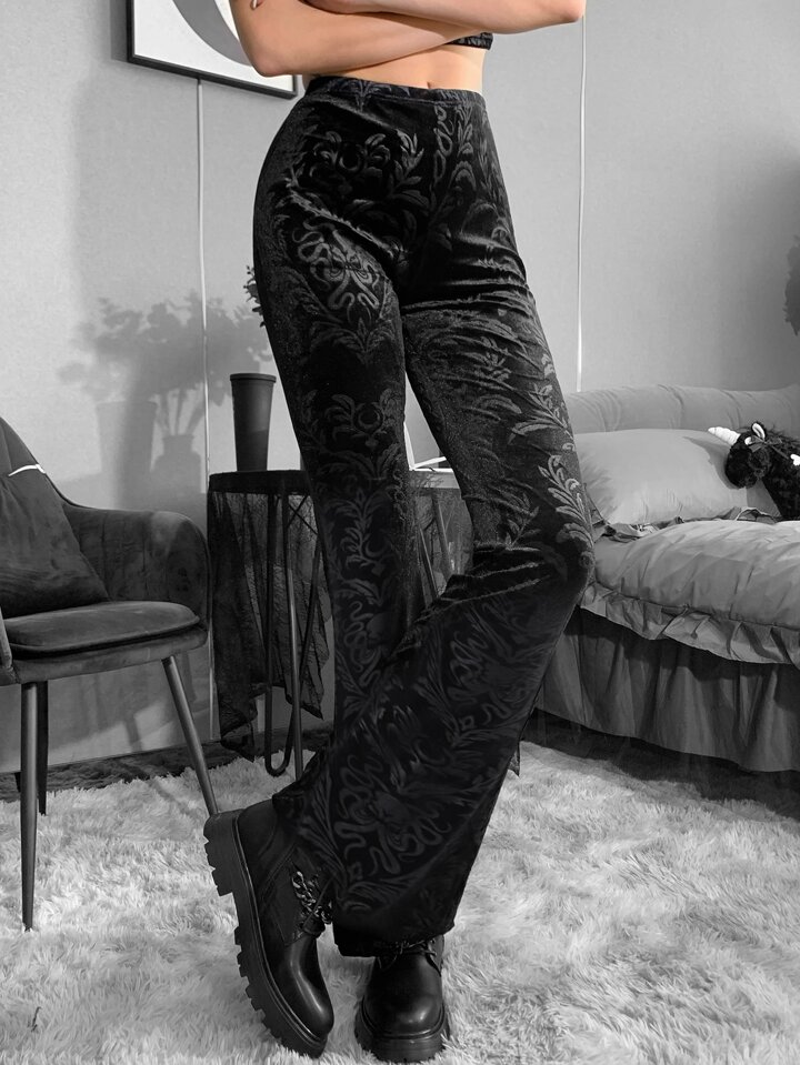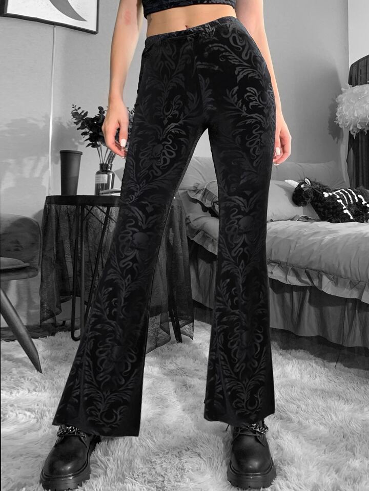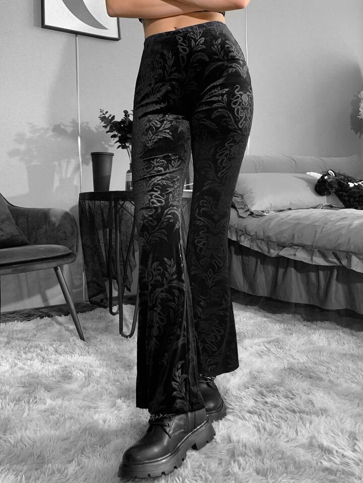 Schlaghose mit Gotisch hoher Taille, Pflanzen Jacquard Samt