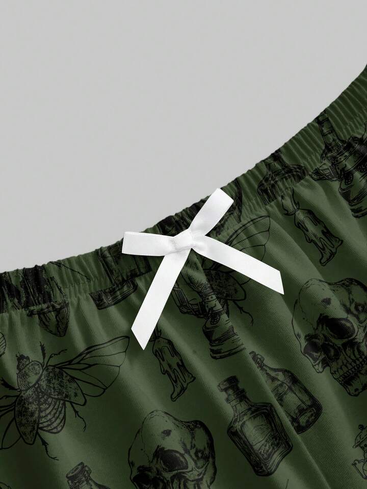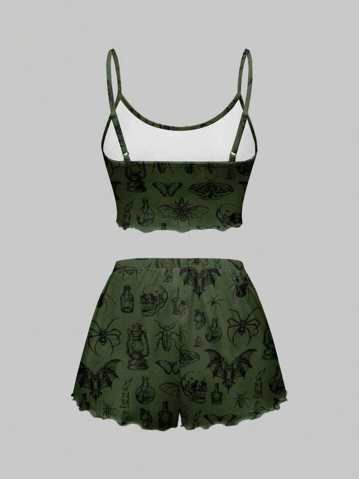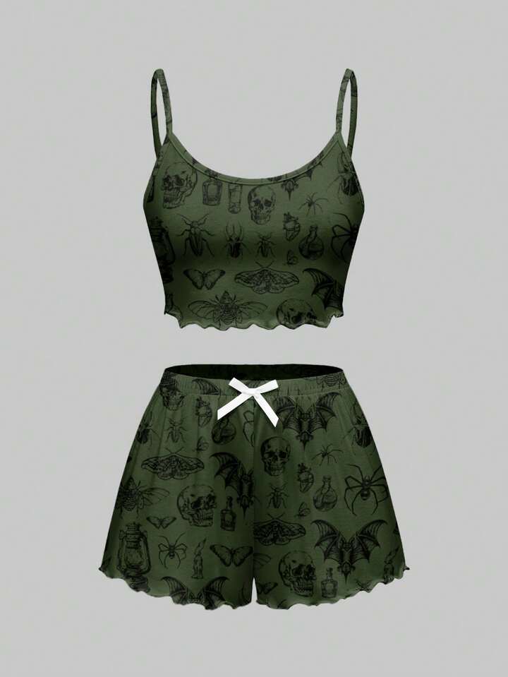 Gothic Insekten-Gift Allover-Muster Trägerhemd & Shorts Pyjama Set, Lässig Nachtwäsche