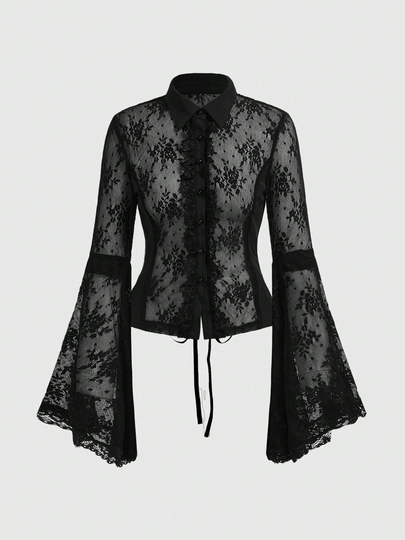 Gothic Spitze Rückenfreie Bluse für Frauen