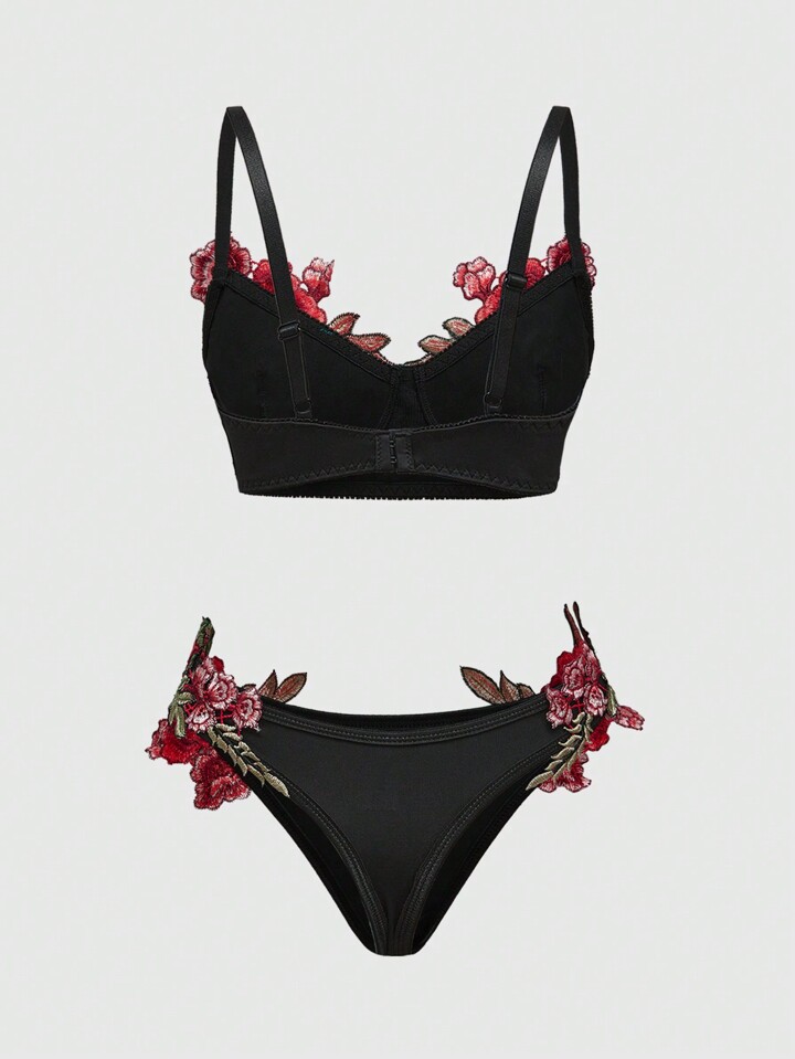 Goth Gotisches Spitzen-Bügel-BH und Panty-Set, romantische dunkle Dessous-Garnitur