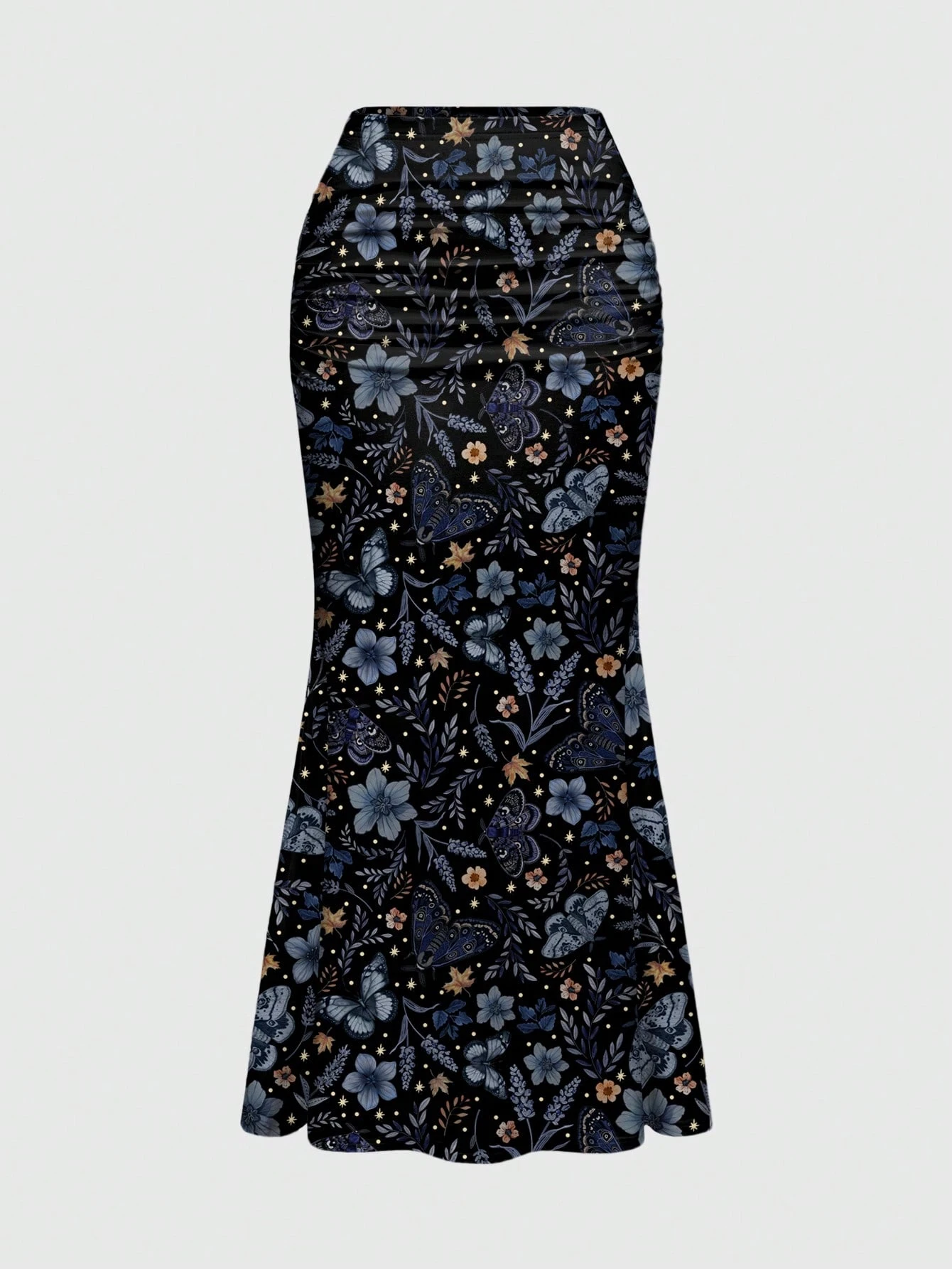 Goth Gotischer mysteriöser Schmetterling & Motte, Sonne & Mond Muster geraffter Bodycon Meerjungfrauenrock für Frauen