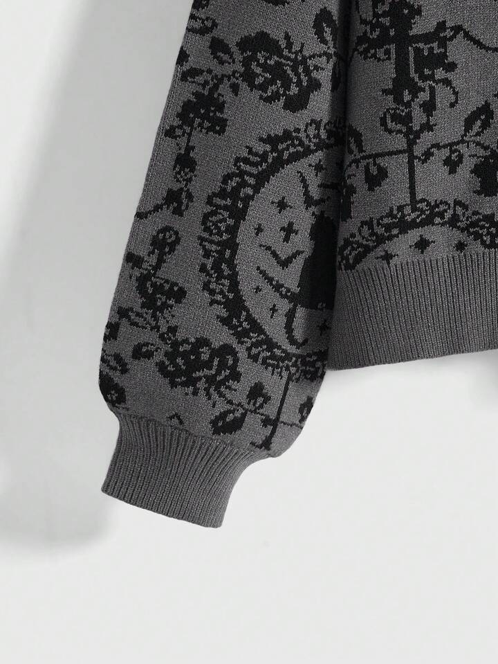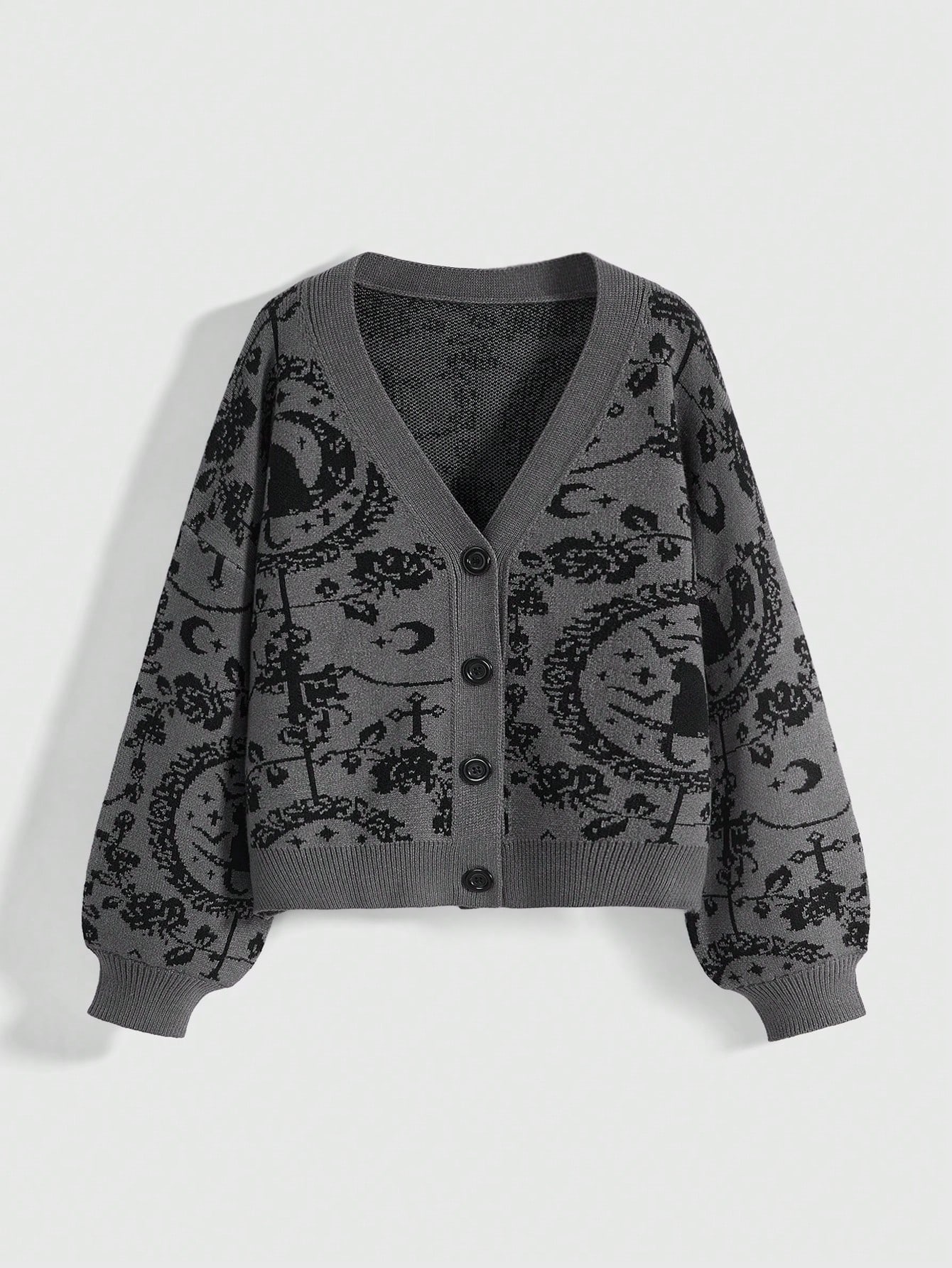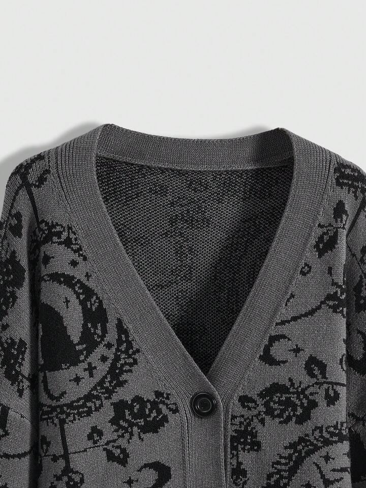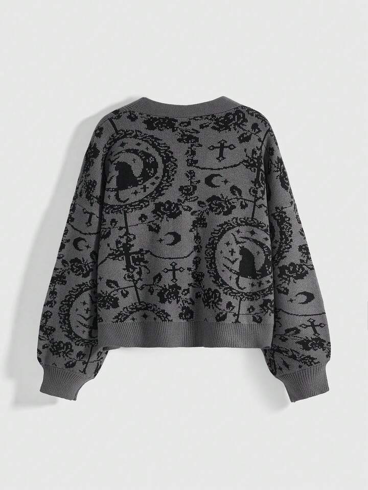 Goth Gotischer Palast Katze Mond Kette Mysteriöse schwarze Katze Allover-Muster Dunkel Strickjacke für Frauen
