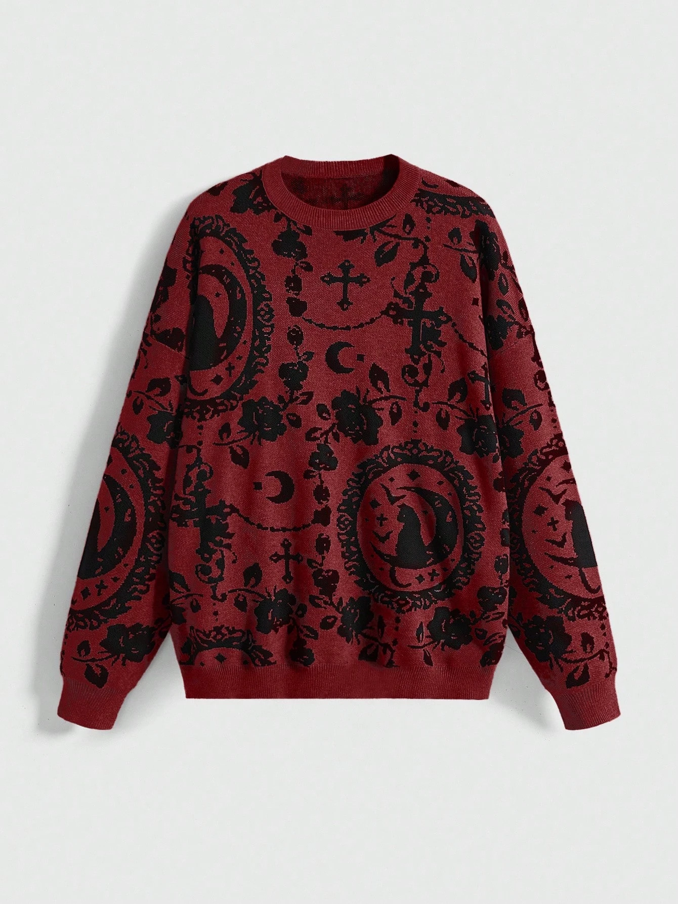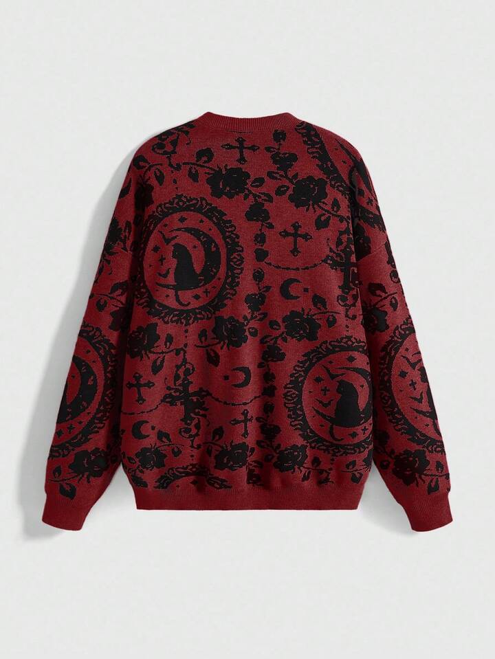 Goth Gotischer Palast Katze Mond Kette Mysteriöse schwarze Katze Allover-Muster Pullover, geeignet für Halloween