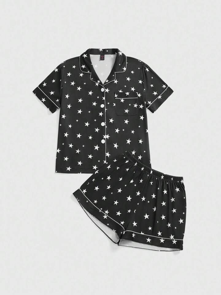 Gothic Pentagramm Muster Kurzarm Shorts Pyjama Set