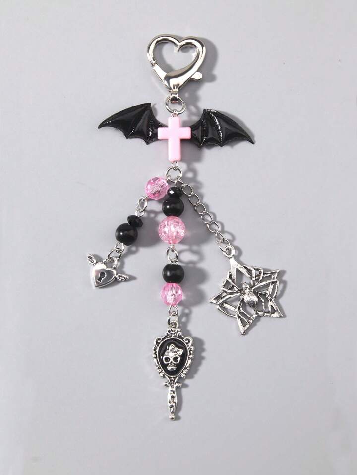 Goth Gotischer Punk Stil schwarzer Fledermausflügel, Schädel, Spinnen Perlen Anhänger Schlüsselanhänger, Handyhülle Anhänger, Taschenbaumler, Geschenkideen für Männer und Frauen, Halloween