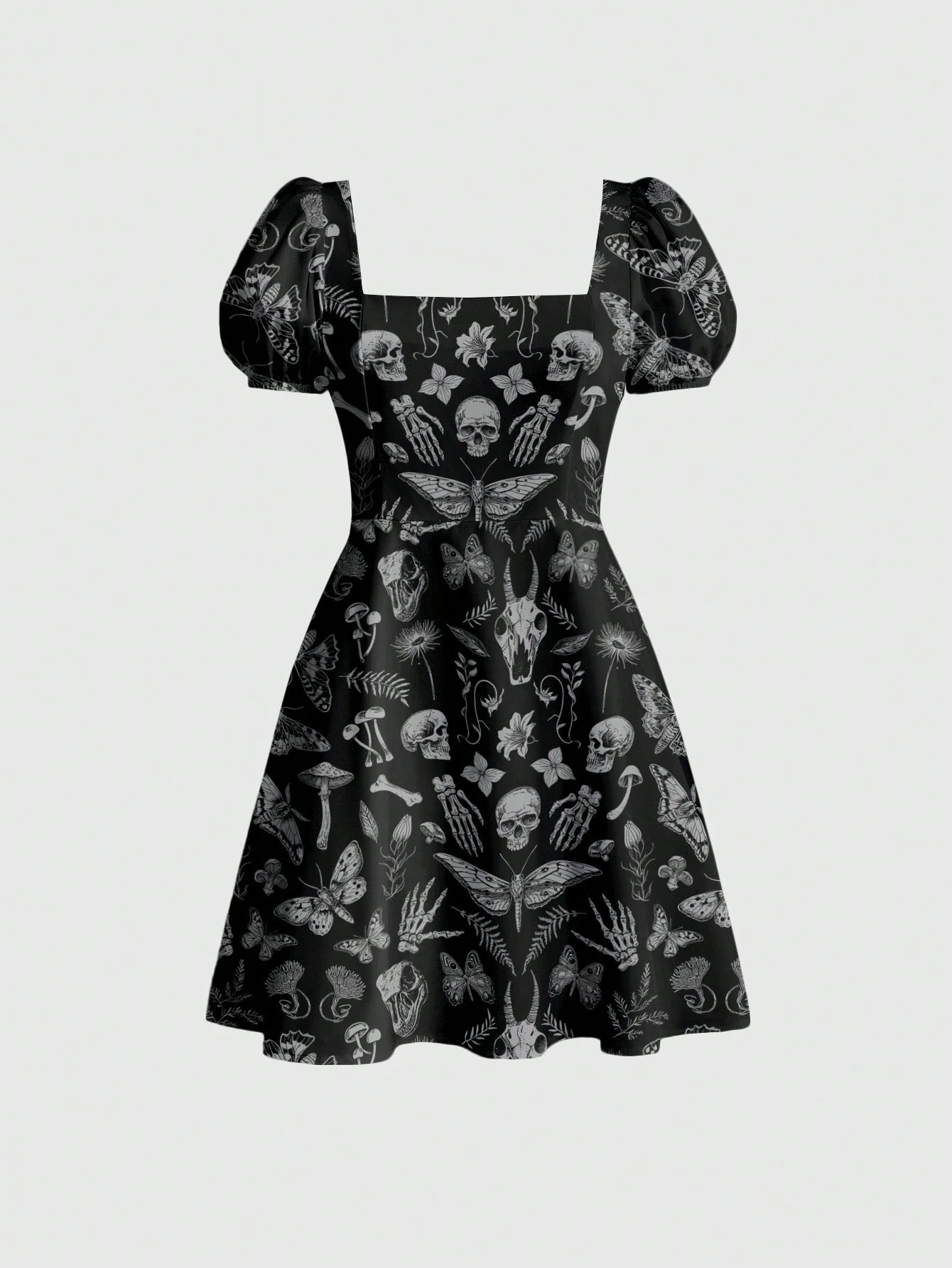 Gotisch-romantischer Schmetterling, Sonne und Mond, sexy dunkler Gothic, College-Stil Urlaubskleid mit Blume Muster für Frauen