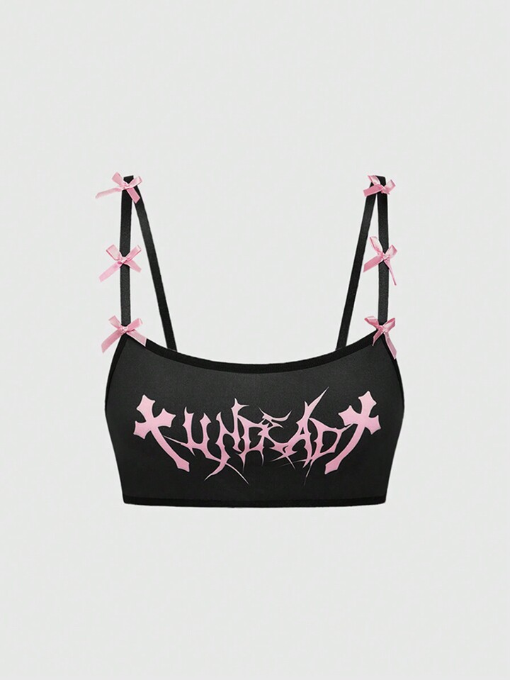 Gotischer romantischer Valentinstag Skelett Gothic Schrift Träger String Dessous Set mit Schleife, Kawaii