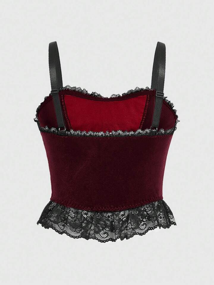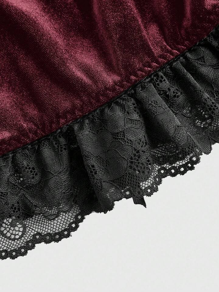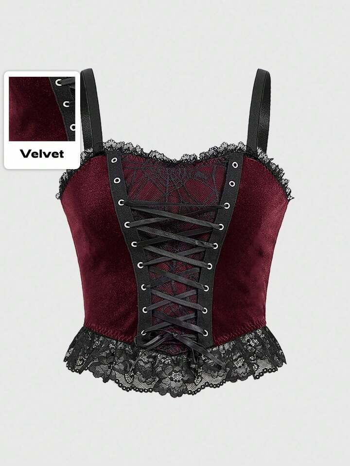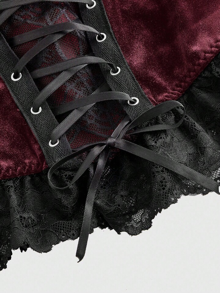 Goth Gotischer sexy Spinnennetz-Mesh- & Samt-Patchwork Crop Top, Halloween