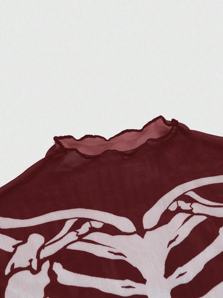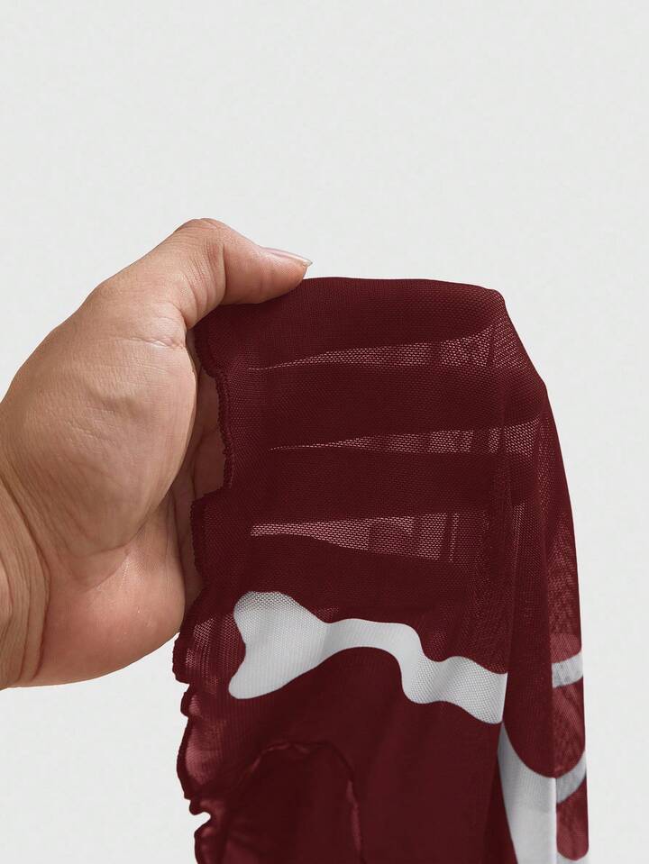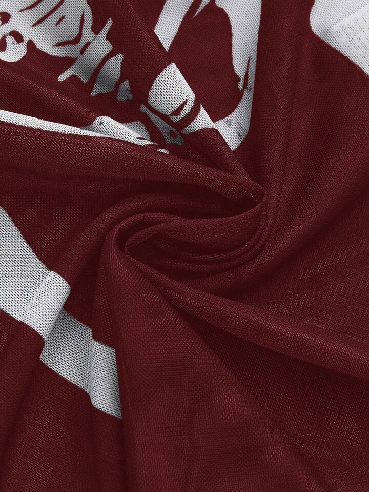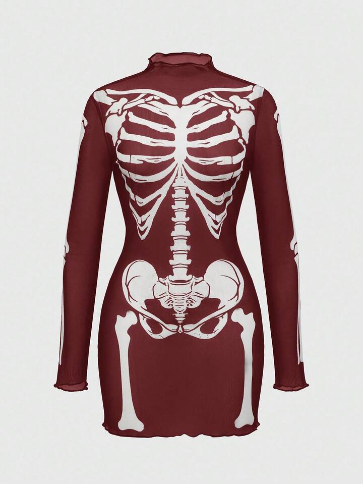 Gothic Skelett beflocktes sexy transparentes Minikleid für Frauen
