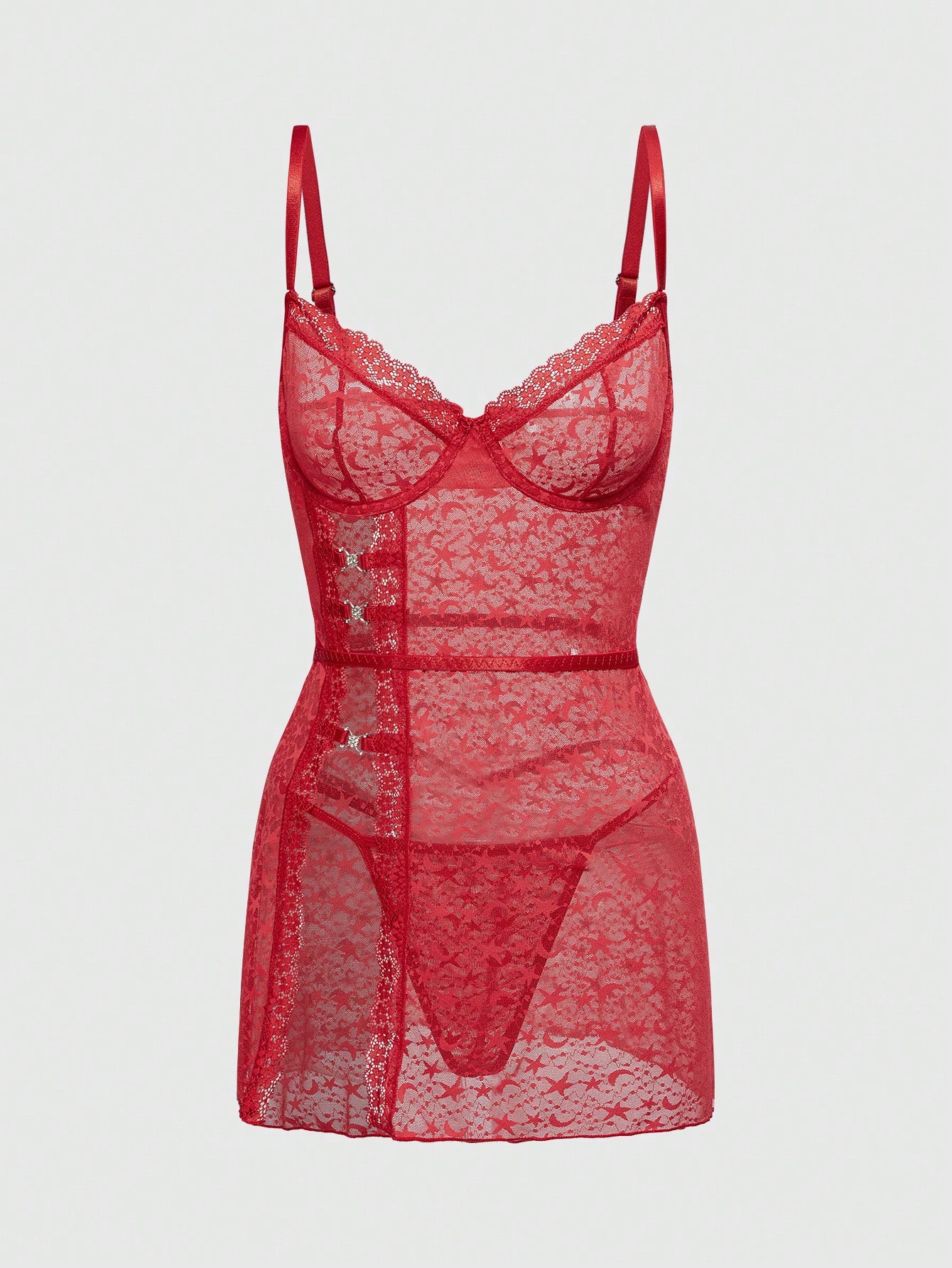 Goth Gotisches Stern- & Mond-Spitzen-BH-Kleid und String-Dessous-Set