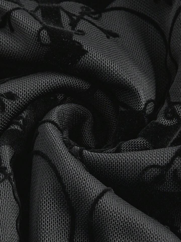 Gothic-Stil asymmetrischer Saum Kleid für Damen mit Blumen-Flockung und schlanker A-Linie Form, mit sexy gerafftem Off-Shoulder Design