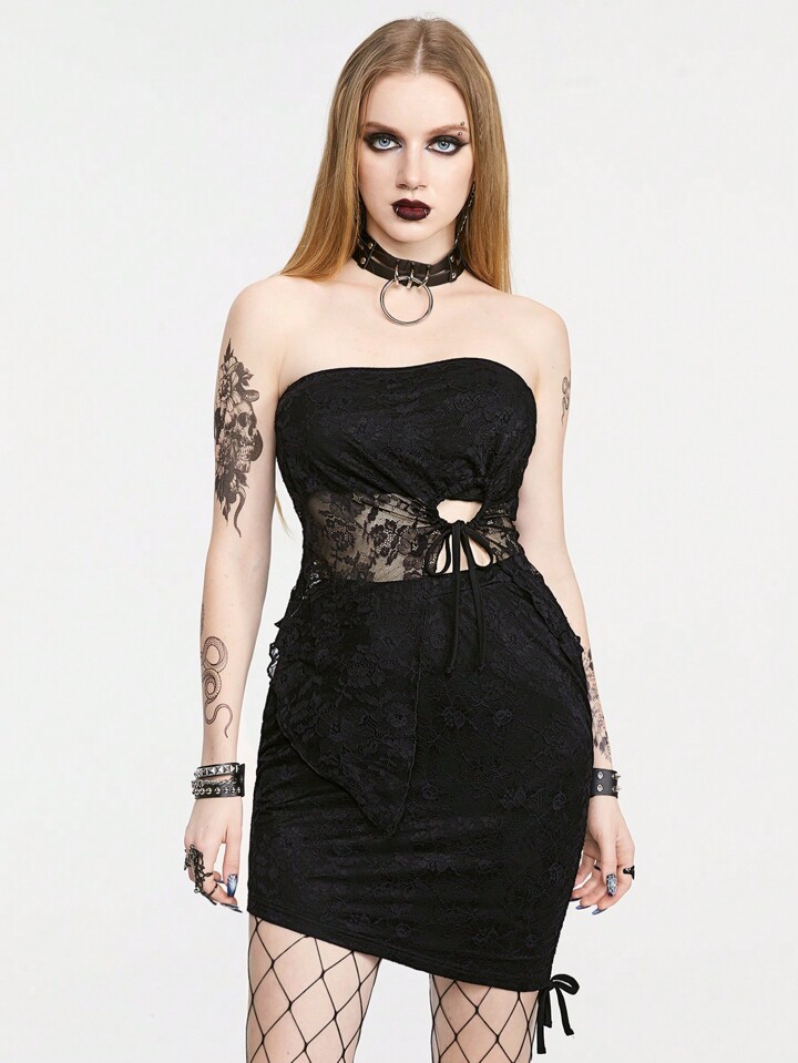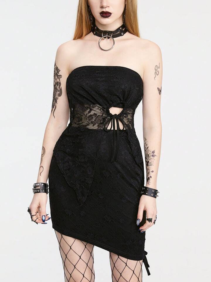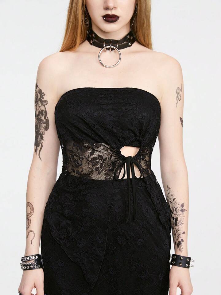 Gothic-Style modisches asymmetrisches Spitzen-Patchwork trägerloses Oberteil und Rock