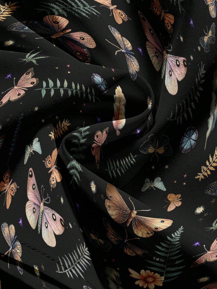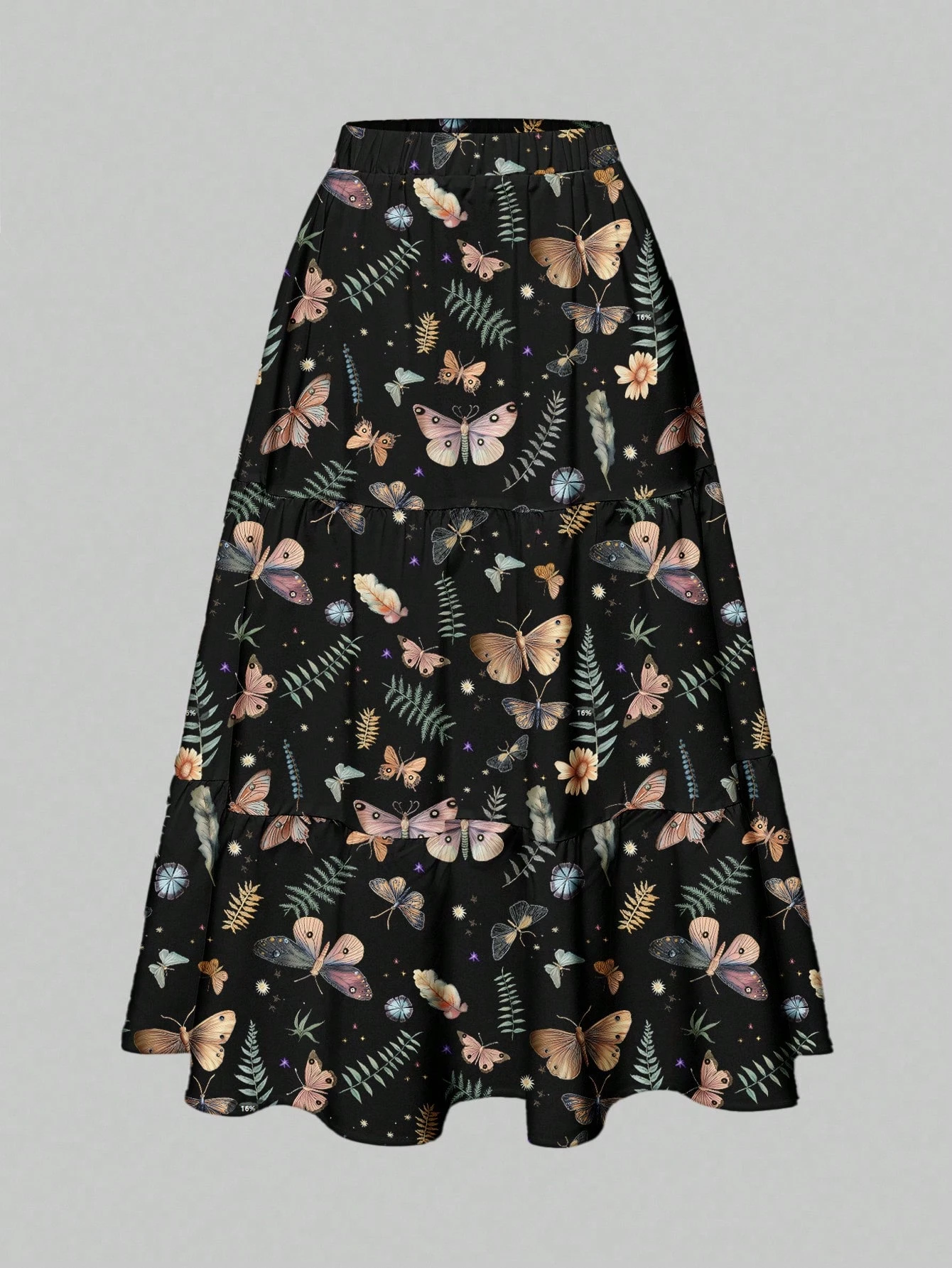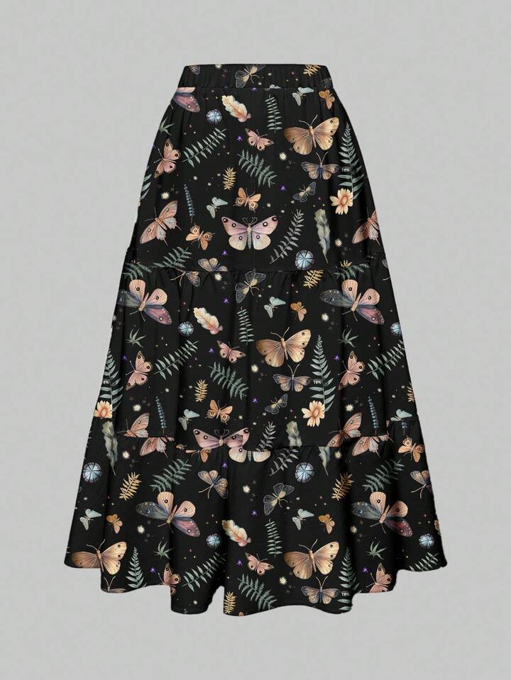 Goth Gotischer Stil Blumen, Schmetterling, Sternenmuster Allover Muster 3-Lagen Damenrock