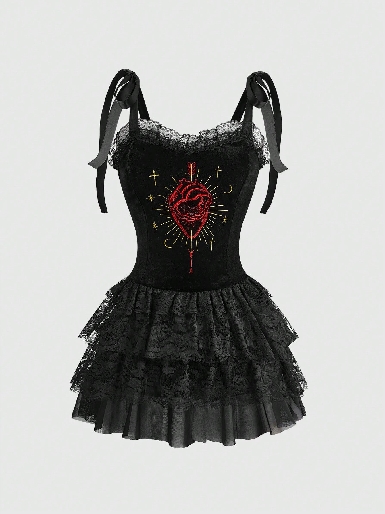 Goth Gotischer Stil Schwan Stickerei Samt Kleid