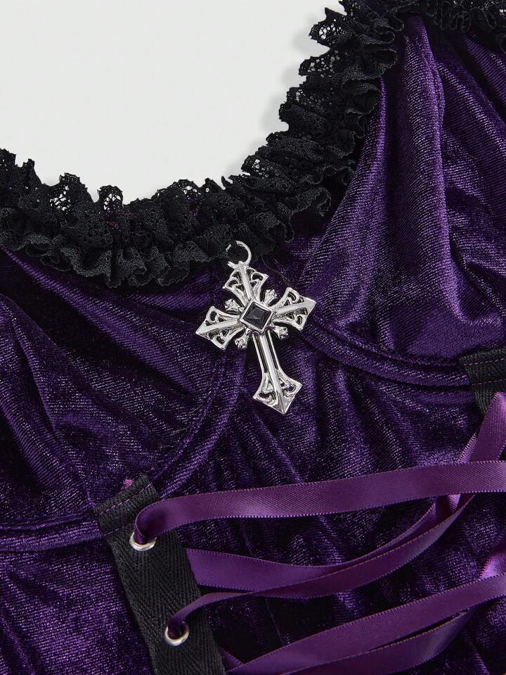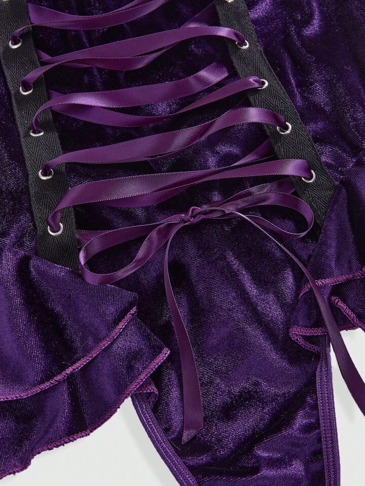 Goth Gotischer Stil Samt Stahl Korsage Schnürung Bodysuit
