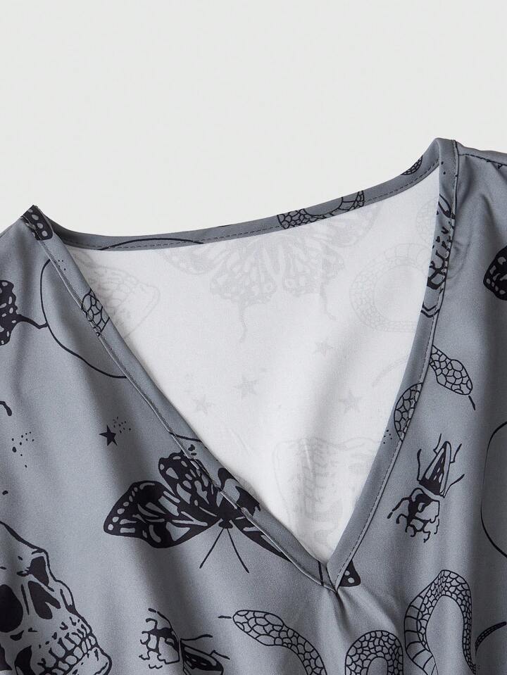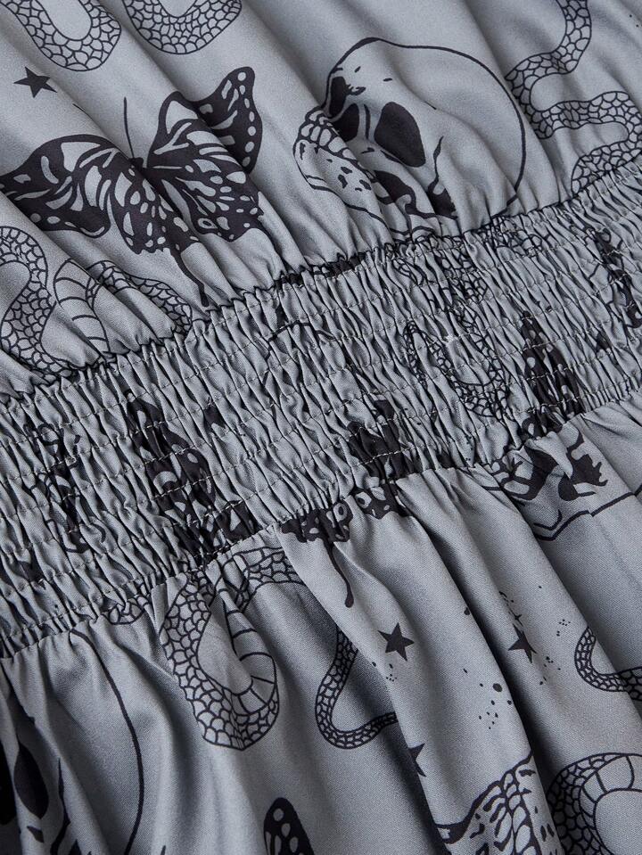 Damen Kleid Im Gothic-stil Mit Schlangen-schmetterlings-skelett-aufdruck, Figurbetont, A-linie