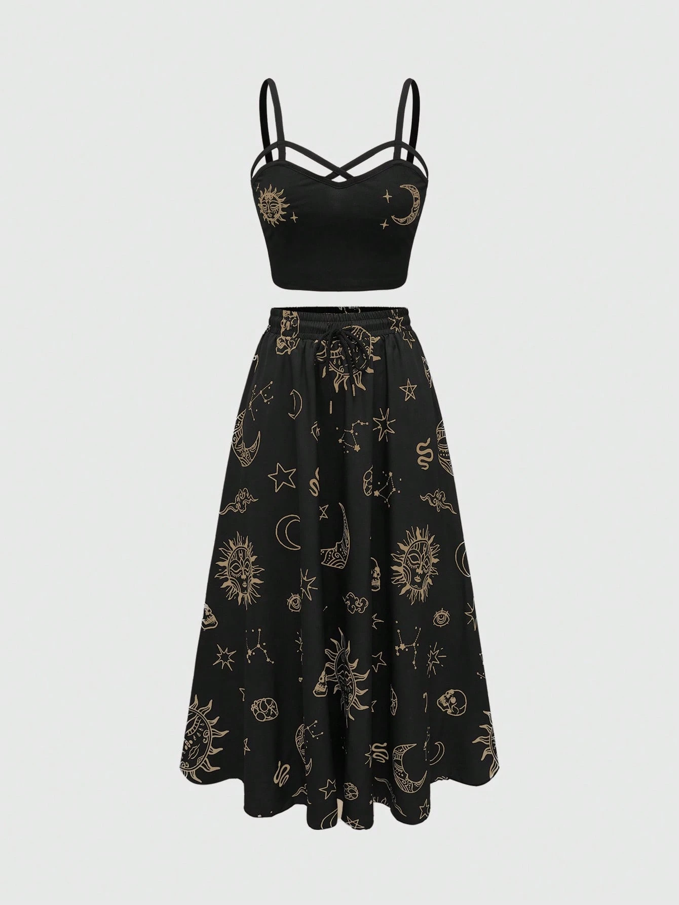 Gothic Urlaubs-Stil Damen 2-teiliges Set - Top mit Kreuzdetails und Mini-Rock