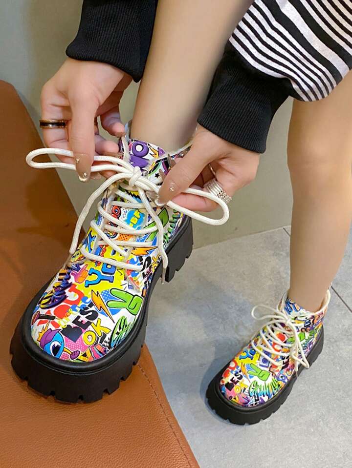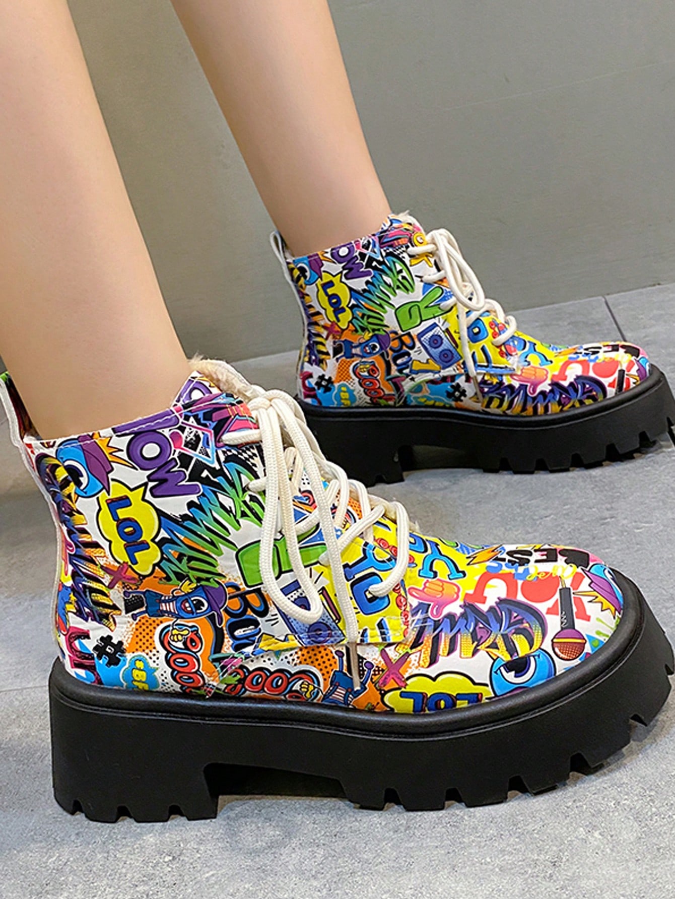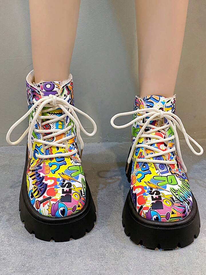Kampfstiefel Mit Schnürsenkeln Und Graffiti-print Am Vorderen Fuß