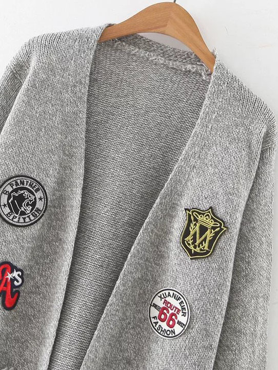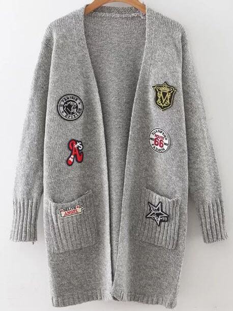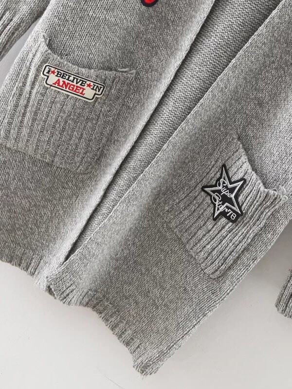 lange Strickjacke-Mantel mit Taschem Steinig Flicken -grau