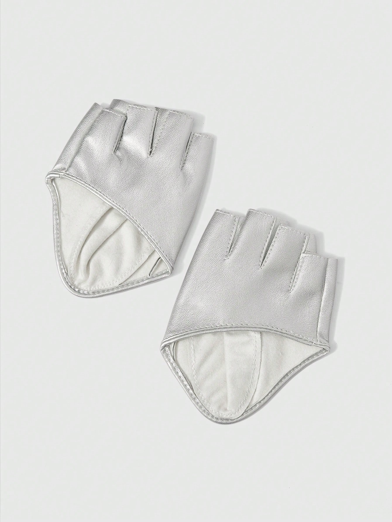 Grunge Punk 1 Paar modische silberne fingerlose PU-Lederhandschuhe