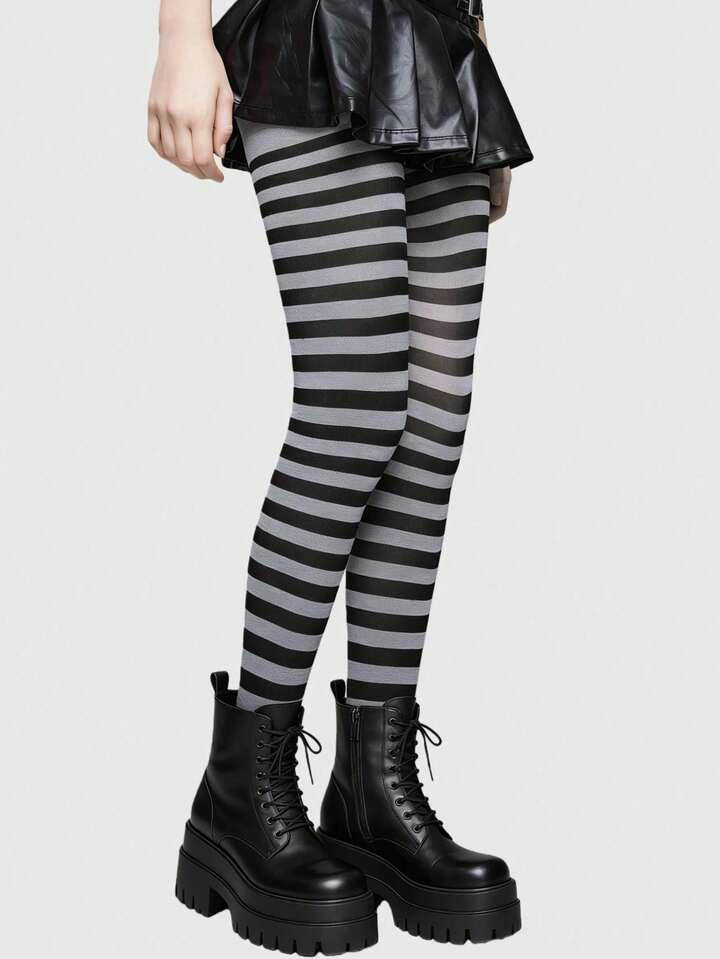 Grunge Punk 1 Paar Gothic-Stil schwarz-weiß gestreifte Strumpfhosen
