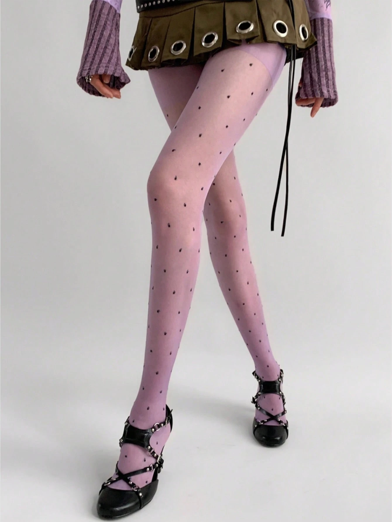 Grunge Punk 1 Paar minimalistische Tüllstrumpfhose mit Punkten, Lolita-lila Leggings, sexy ultraleichte elastische atmungsaktive Strümpfe, vielseitig einsetzbare klassische Strumpfhose für alle Jahreszeiten