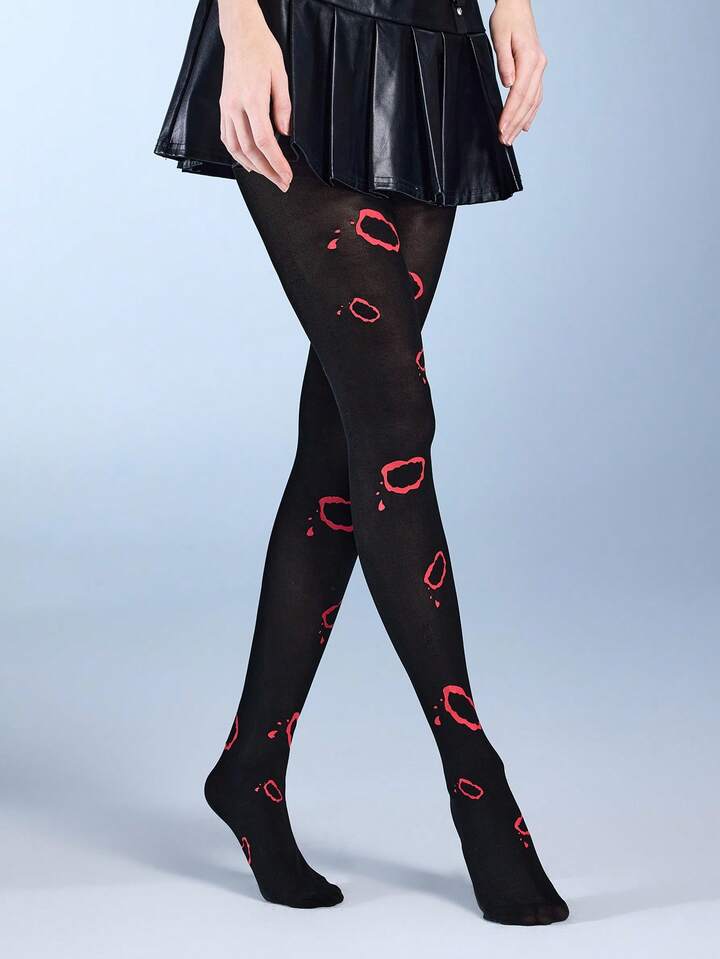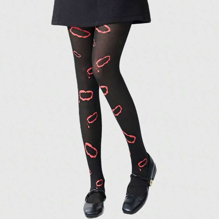 Grunge Punk 1 Paar Damen Silber Herz Muster Strumpfhose, minimalistisch modisch für alle Jahreszeiten, Alltagstragen