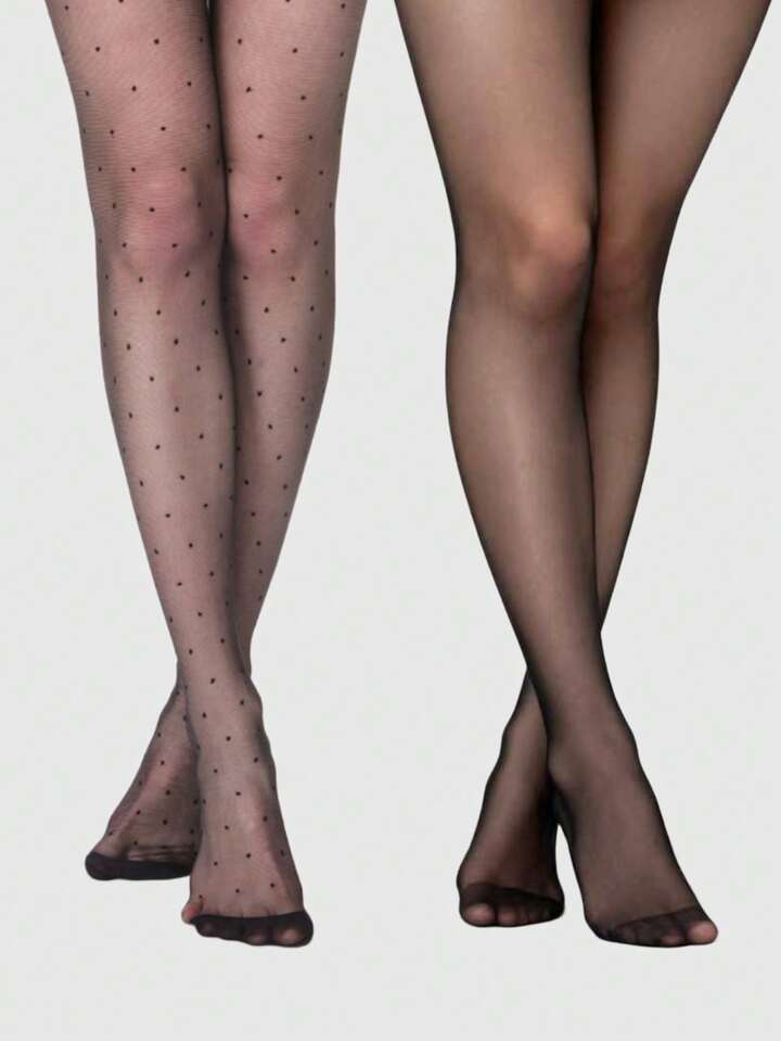 Grunge Punk 1 Stücke minimalistische schwarze Strümpfe + 1 Stücke süße gepunktete Strümpfe, 2 Stücke vielseitige Basic Strumpfhosen Kombination, sexy ultradünne und elastische Strümpfe