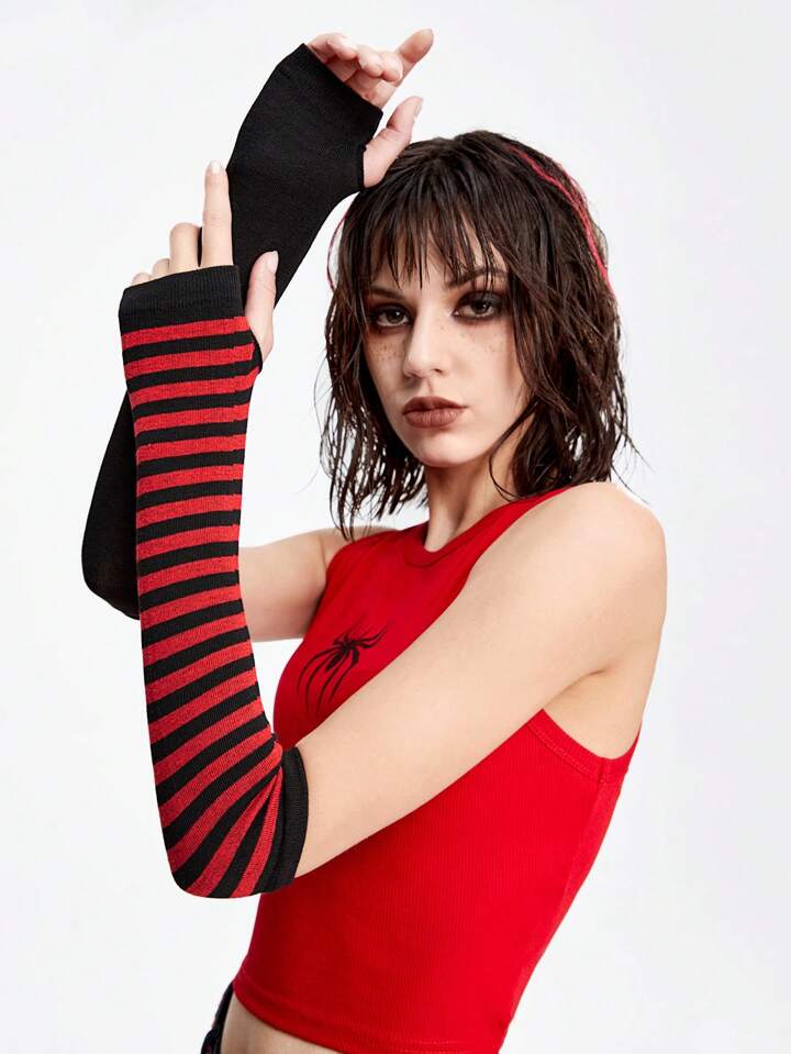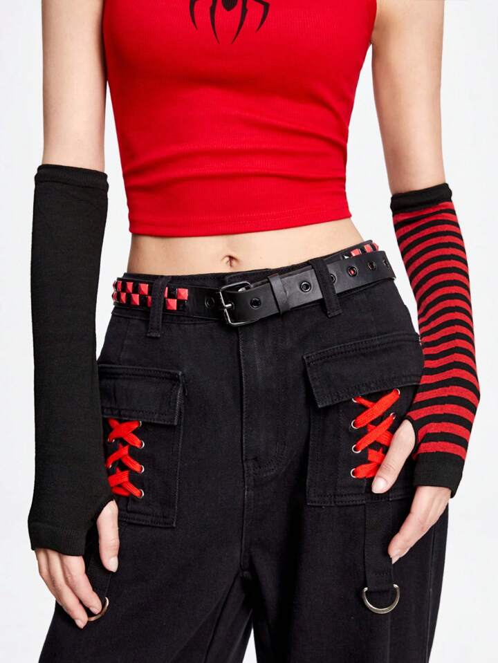 Grunge Punk 1 Paar Ärmelschoner In Kontrastfarbe, Schwarz Und Rot